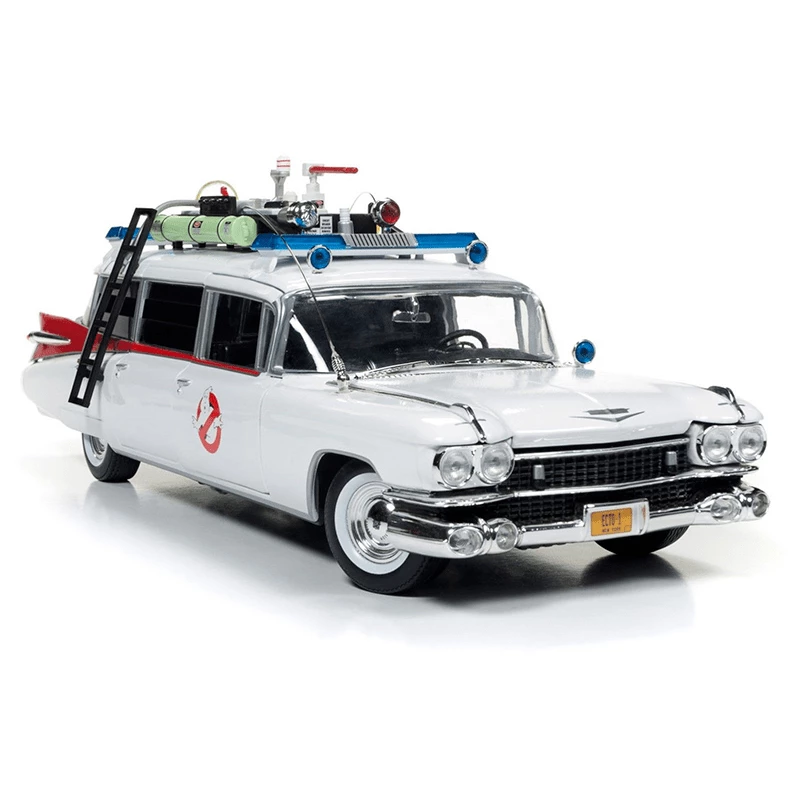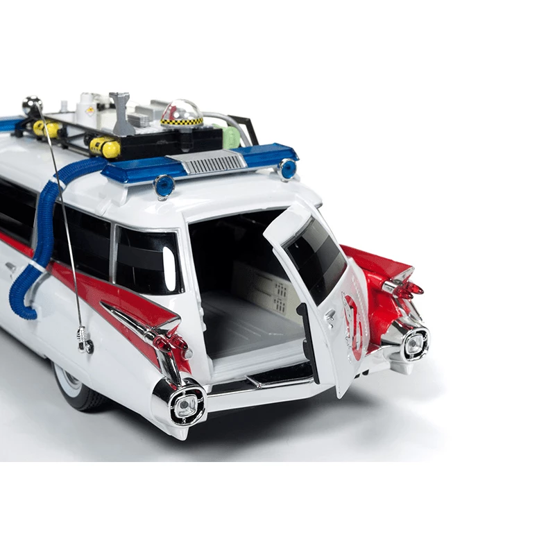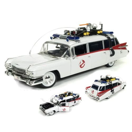 This is a 1/21 scale model. Ghostbusters – 1959 Cadillac Ambulance “Ecto-1” – Ghostbusters (1984), , Features:, , Opening Doors, Hood & Tailgate, , Detailed Engine, , Detailed Interior, , Steerable Front Wheels, , Detailed Exterior, ,