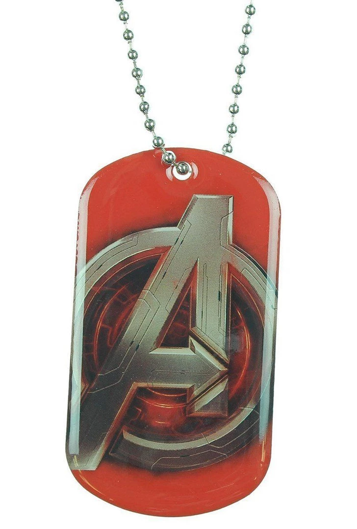 - This stainless steel dog tag pendant features the Avengers “A” logo and comes with a 22″ ball chain.