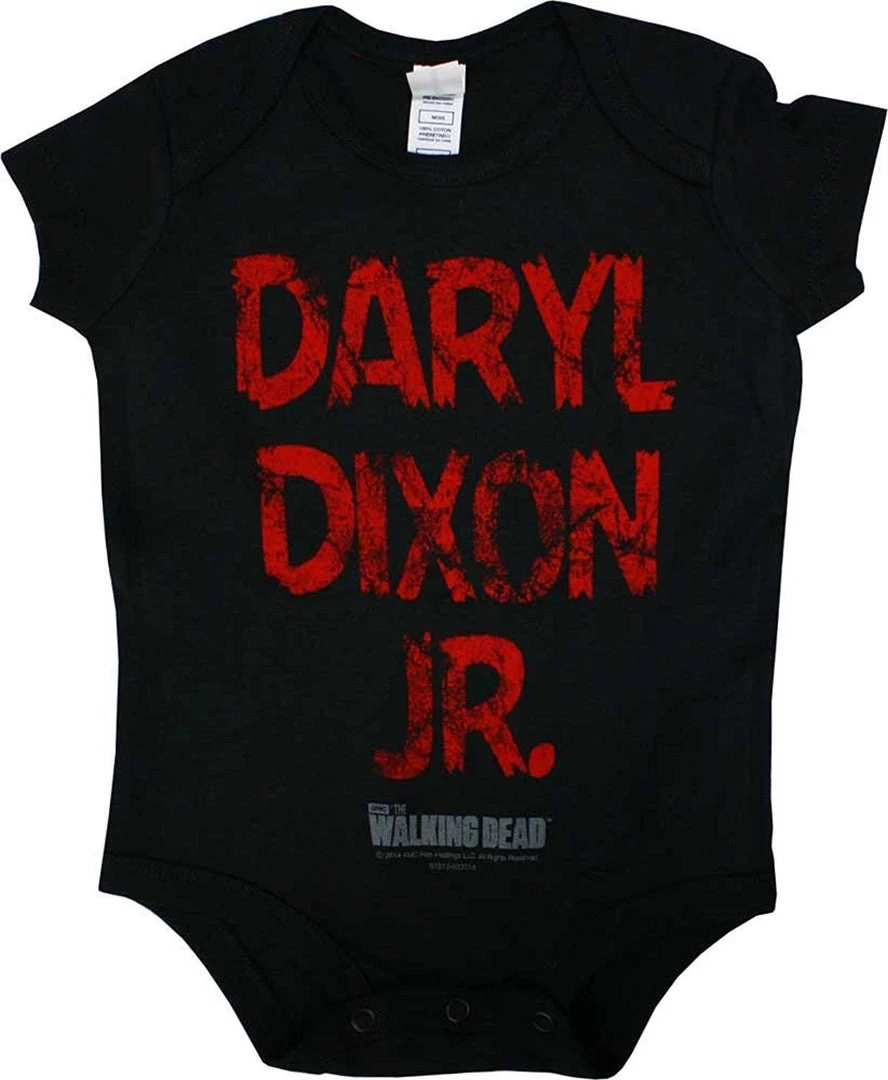 Now dress your child up as your favorite Walking Dead character with this officially licensed bodysuit! This 100% cotton infant bodysuit features the quote “Daryl Dixon Jr.” with snap bottoms for easy changing. Standard infant sizes.