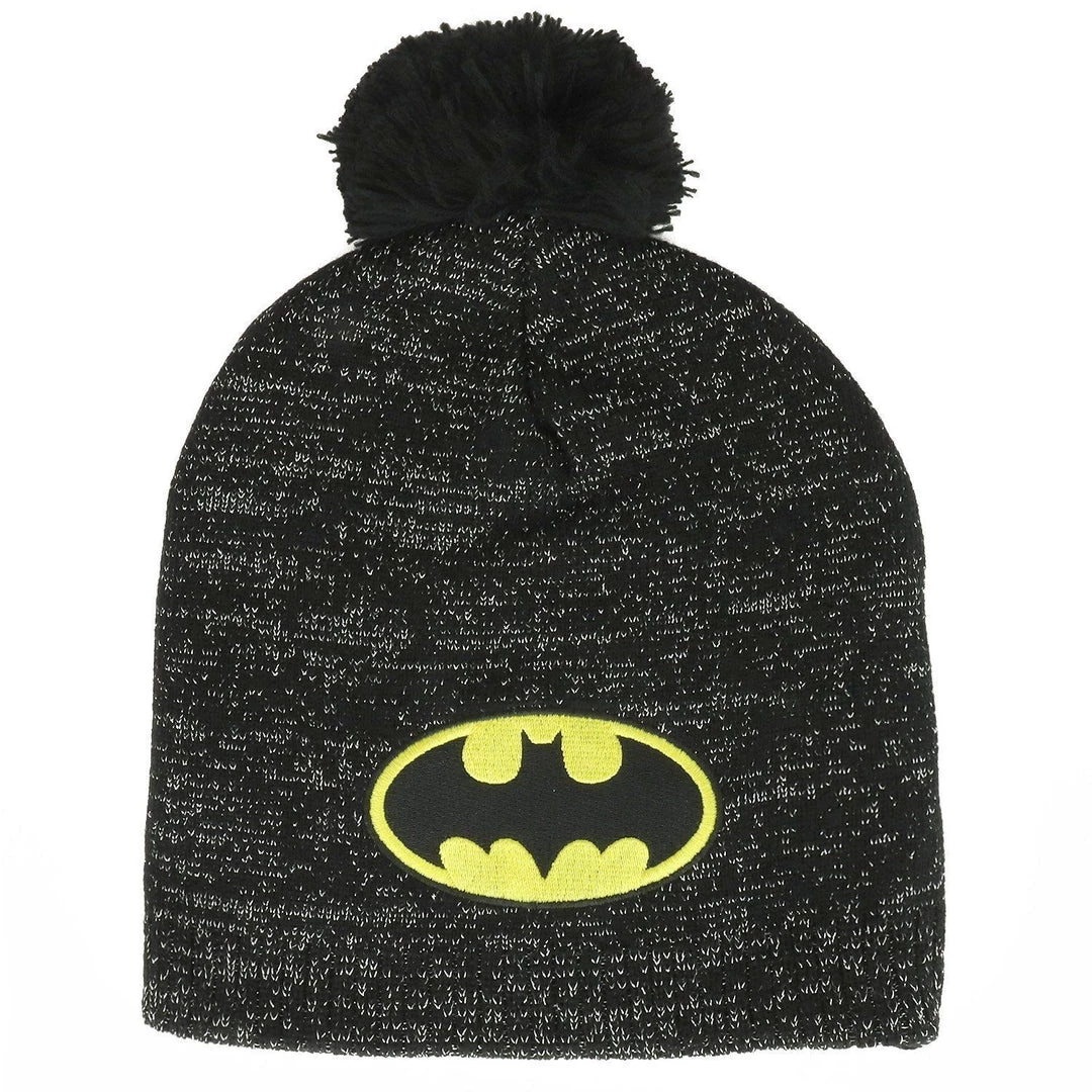 - Front side of beanie features Batman logo embroidered patch. Top of beanie is accented with a pom.