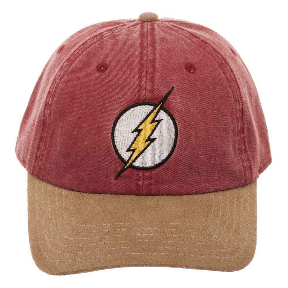 You may not turn into a speedster when you put the DC Flash Hat on, but you will look hero-ready to stop any crime or enjoy a marathon of your favorite superhero, The Flash! This is a red, faux suede dad hat with a white lightning bolt Flash applique on the front.
