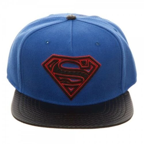 Blue Superman hat. Features the classic “Superman” logo in black and red on the front with an adjustable back. Officially licensed.