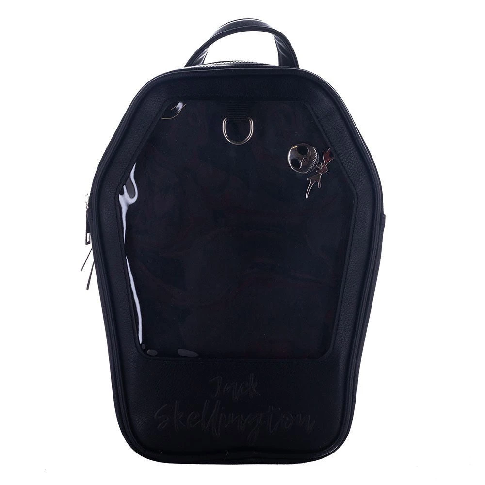 et yourself apart, just like Jack Skellington, with this Nightmare Before Christmas movie black coffin collectible pin display mini backpack! The Nightmare Before Christmas movie fan merchandise is a black coffin ITA mini backpack made of PU material and includes adjustable straps for the perfect fit. The Nightmare Before Christmas Jack Skellington coffin mini bag accessory includes an interior zippered pocket with a removable collectible pin display insert. The Nightmare Before Christmas black coffin mini bag accessory measures 11″ H x 8″ W x 4″ D and can be easily wiped clean with a damp cloth for quick, easy care. The Jack Skellington Nightmare Before Christmas coffin mini backpack includes a removable pin and would be the perfect gift for diehard fans!