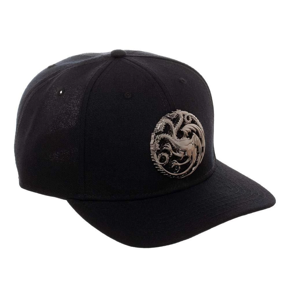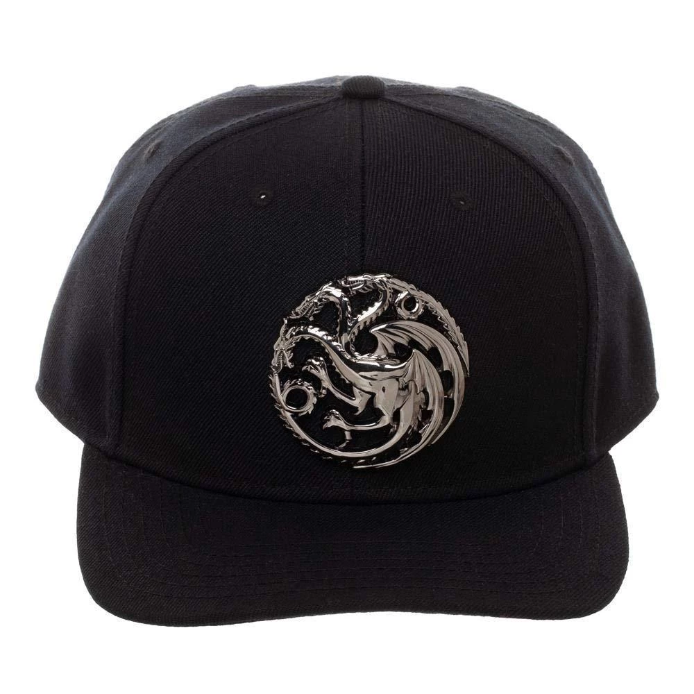 This Officially Licensed Game of Thrones Hat features the red dragon emblem of House Targaryen on the front. It’s black with a pre-curved bill. Size adjustable, One Size Fits Most. Made by Bioworld.Â