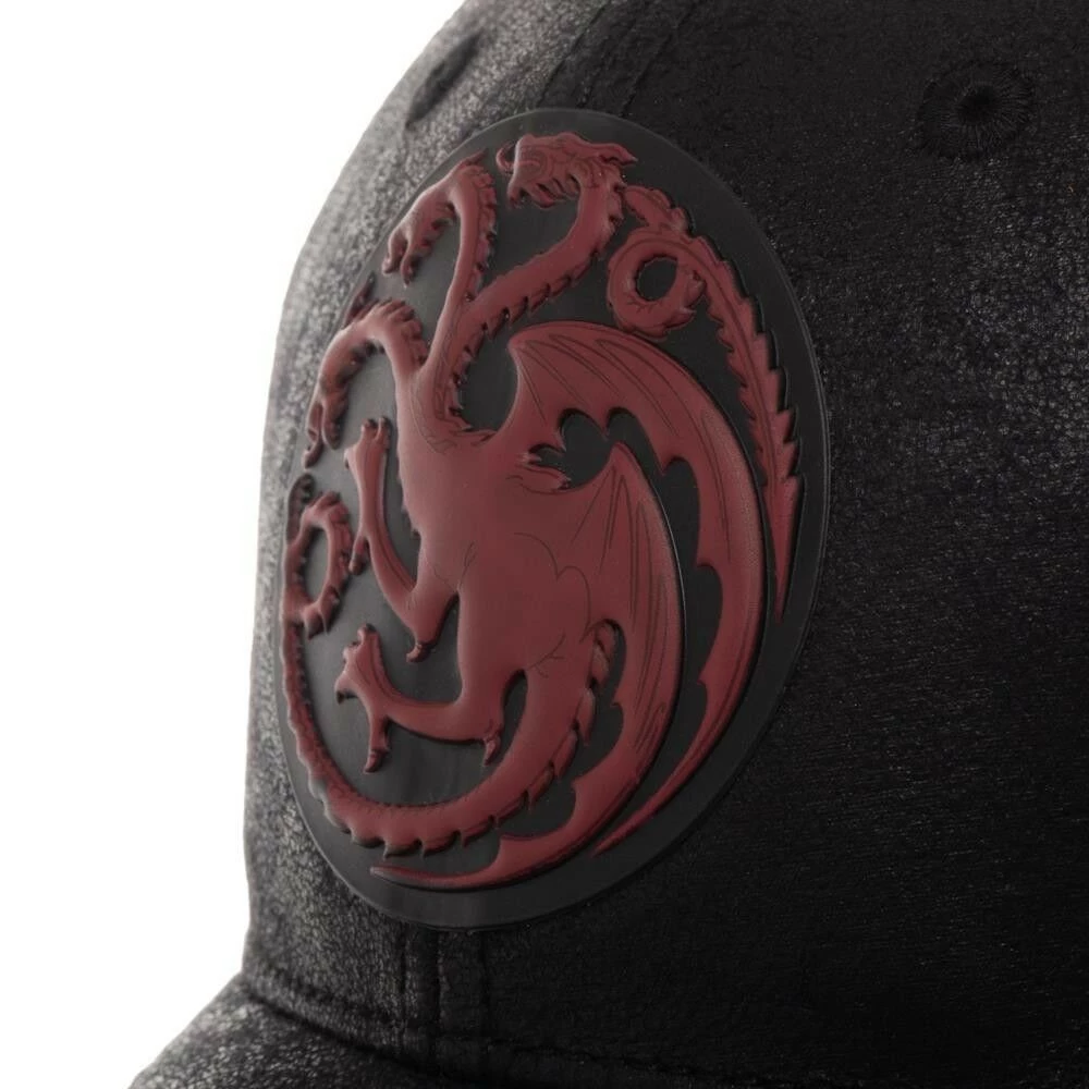 This Officially Licensed Game of Thrones Hat features the red dragon emblem of House Targaryen on the front. It’s black with a pre-curved bill. Size adjustable, One Size Fits Most. Made by Bioworld.Â