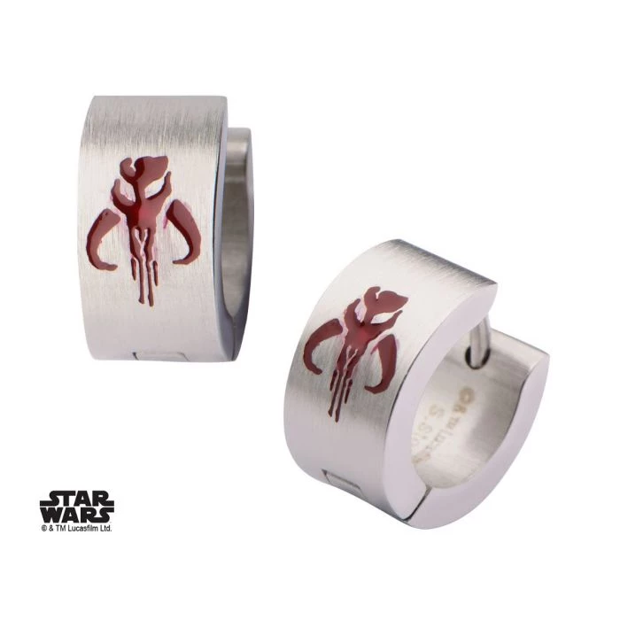 Women’s Stainless Steel Star Wars Enamel Filled Mandalorian Symbol Huggie Earrings. Licensed Jewelry Packaging Included. . Dimension: 0.5″ (Length) x 0.31″ (Width) x 0.063″ (Height).