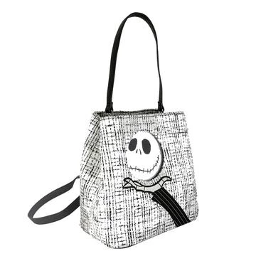 What’s This? A Jack Skellington backpack perfect for the cold months! Bring the pumpkin king with you everywhere you go. A modern twist on a scary tale, this bag features cozy white and black tweed fabric, with the classic face of our beloved Jack as a coin purse.