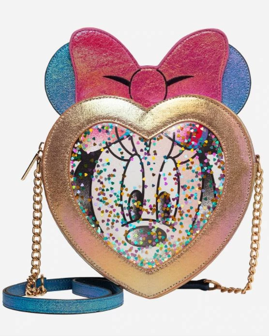 Minnie style, always! Bring your favorite mouse with you every day with this beautiful iridescent crossbody. The base of this crossbody is shimmery and features a clear base so you can see Minnie’s face popping through and lots of fun holographic heart confetti. The bag also includes a classic pink iridescent bow and a top zipper closure to keep all your belongings secure and a comfortable crossbody strap. Some days call for a little extra sparkle, and this collectible crossbody is truly ear-resistible!