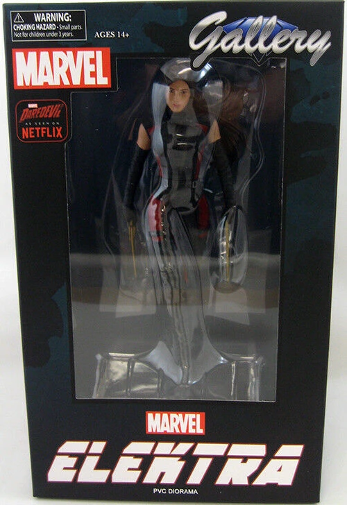 A Diamond Select Toys release! The Netflix series of Marvel Gallery PVC dioramas continues with the assassin Elektra! Based on her appearance in Daredevil Season 2 on Netflix, this PVC figure of Elodie Yung as Elektra stands atop a pedestal inspired by a New York City rooftop, uniting it thematically with the other Netflix releases. Measuring approximately 10 inches tall, this diorama features detailed sculpting, exacting paint applications, and an authentic likeness. Packaged in a full-color window box. Sculpted by Rocco Tartamella!.