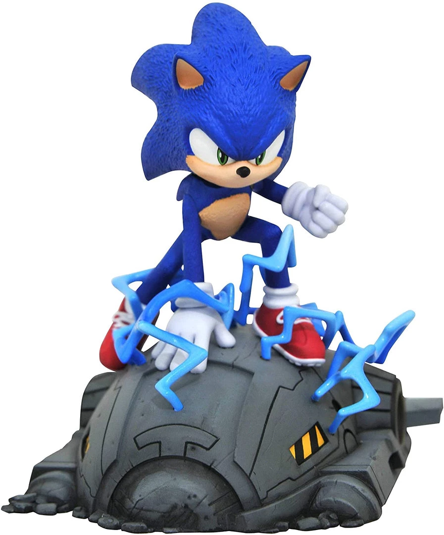 This piece is sure to go fast! Based on the hit movie, this approximately 5″ sculpture shows Sonic standing on one of Dr. Robotnik’s drones, about to take off in a burst of speed, lightning crackling around him. Sculpted in a 1/6 scale, this statue features detailed sculpting and paint applications. Designed by Joe Allard, sculpted by Varner Studios.