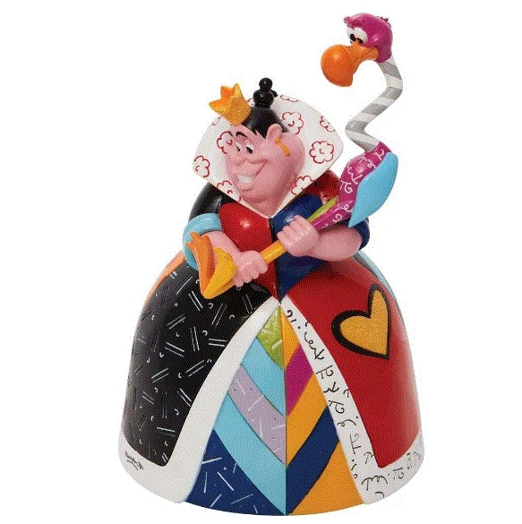 With bold color and compelling pattern, contemporary artist Romero Britto captures the fun and whimsy of Disney. Redesigning the antagonist from Alice and Wonderland, the Queen of Hearts gets a fashionable makeover of glam and glitter.