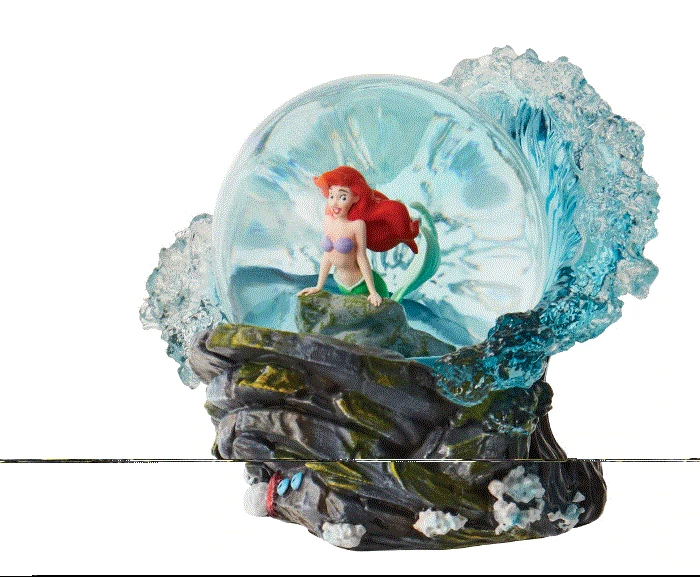 This lovely Little Mermaid 100 MM Waterball from Disney Showcase Collection captures a daydreaming Ariel in stunning hand painted detail. An ornate base with clear resin waves crashing the surface provides us peek both above and under the sea.