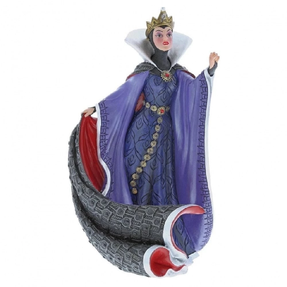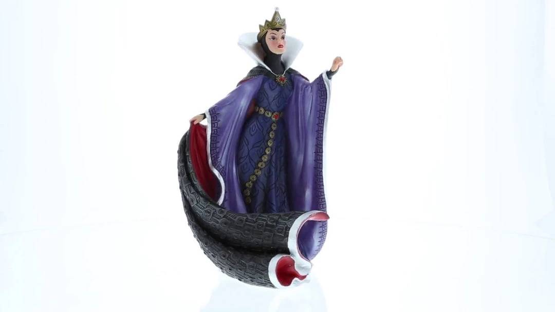 Snow White’s menacing villain commands respect and attention in this elegant gown. The Evil Queen’s floor-length cape creates a dramatic backdrop, updated with a tonal deco pattern and red lining. Faux gems and a newly ornate belt give the final luxe touches. The figurine is made from resin. Each piece is hand painted and slight color variations are to be expected which makes each piece unique. Supplied in branded gift box. Not a toy or children’s product. Intended for adults only.