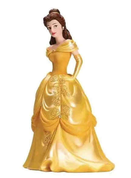 From Enesco. Belle, beautiful Belle. The magic and romance of the 1991 animated musical film are captured in this wonderful Disney Showcase Beauty and the Beast Belle Couture de Force Statue showcasing the adventure-seeking young booklover at her best. Measuring about 8 1/10-inches tall x 5 7/10-inches wide x 4 1/2-inches long, it’s made of resin and calcium carbonate.