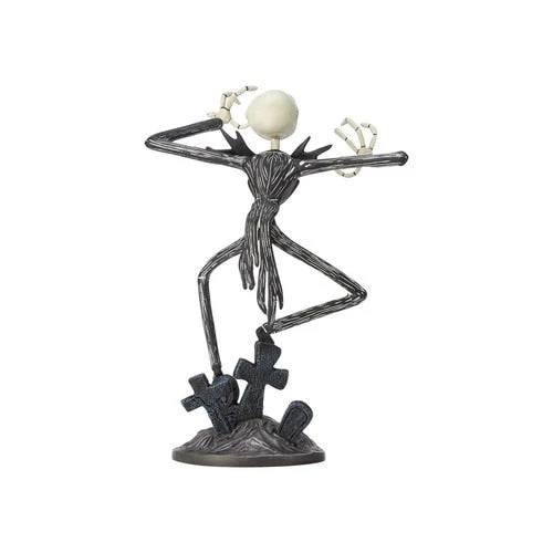 Jack Skellington glides atop tombstones as he sings a haunting melody, but little does he know Sally is watching the delightfully frightful scene. Handcrafted and hand-painted, this 8 1/4″ tall vinyl figurine captures Jack’s existential angst in intricate detail. Presented in window gift box packaging.