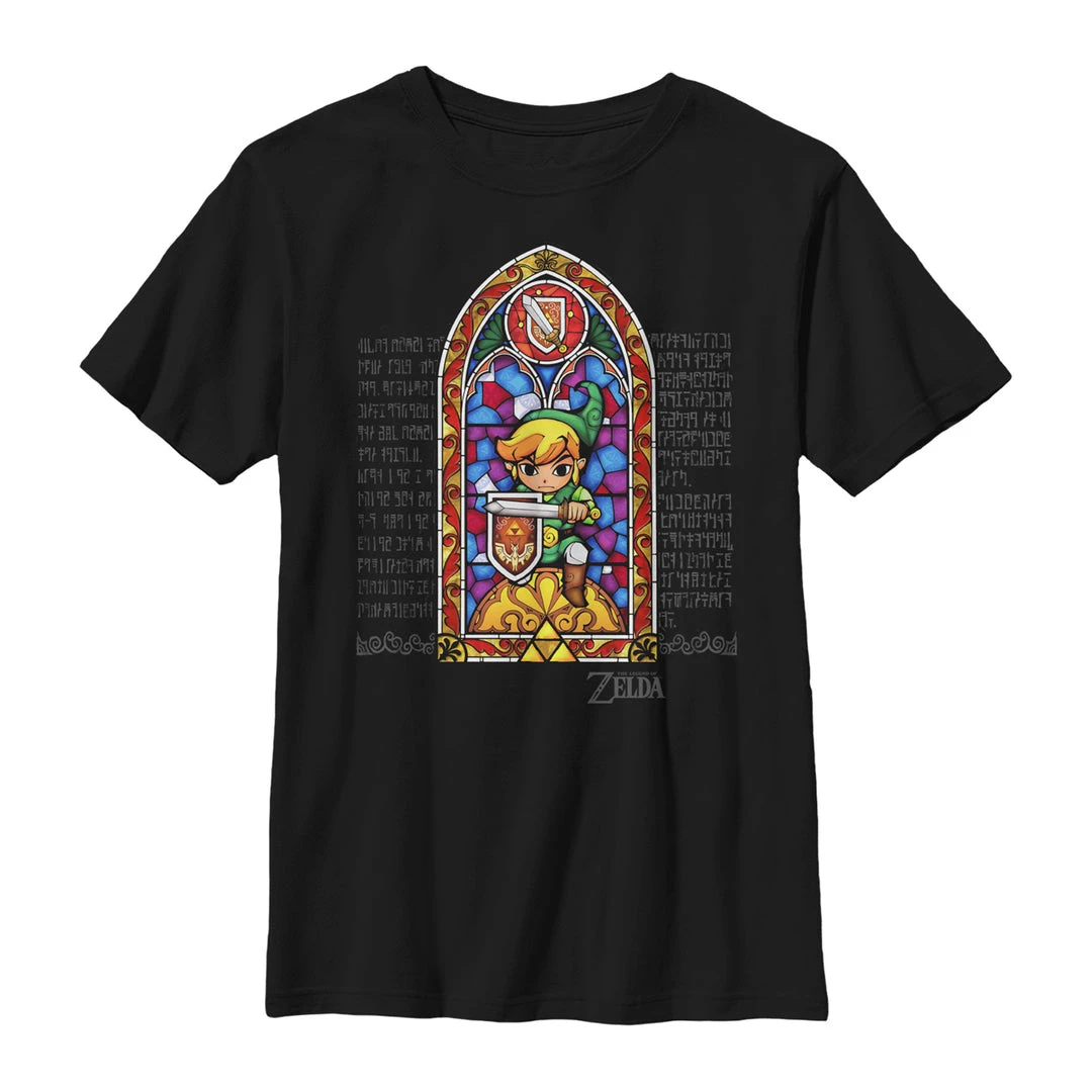 - Celebrate one of your favorite video games with the Nintendo Legend of Zelda Stained Glass Boys’ T-Shirt.