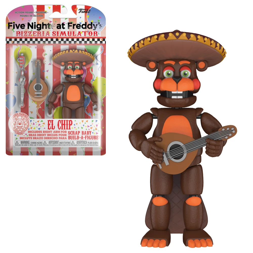 - “This Five Nights at Freddy’s: Pizza Simulator El Chip 5-Inch Action Figure includes character specific accessories and build-a-figure a piece to build your own Scrap Baby!
