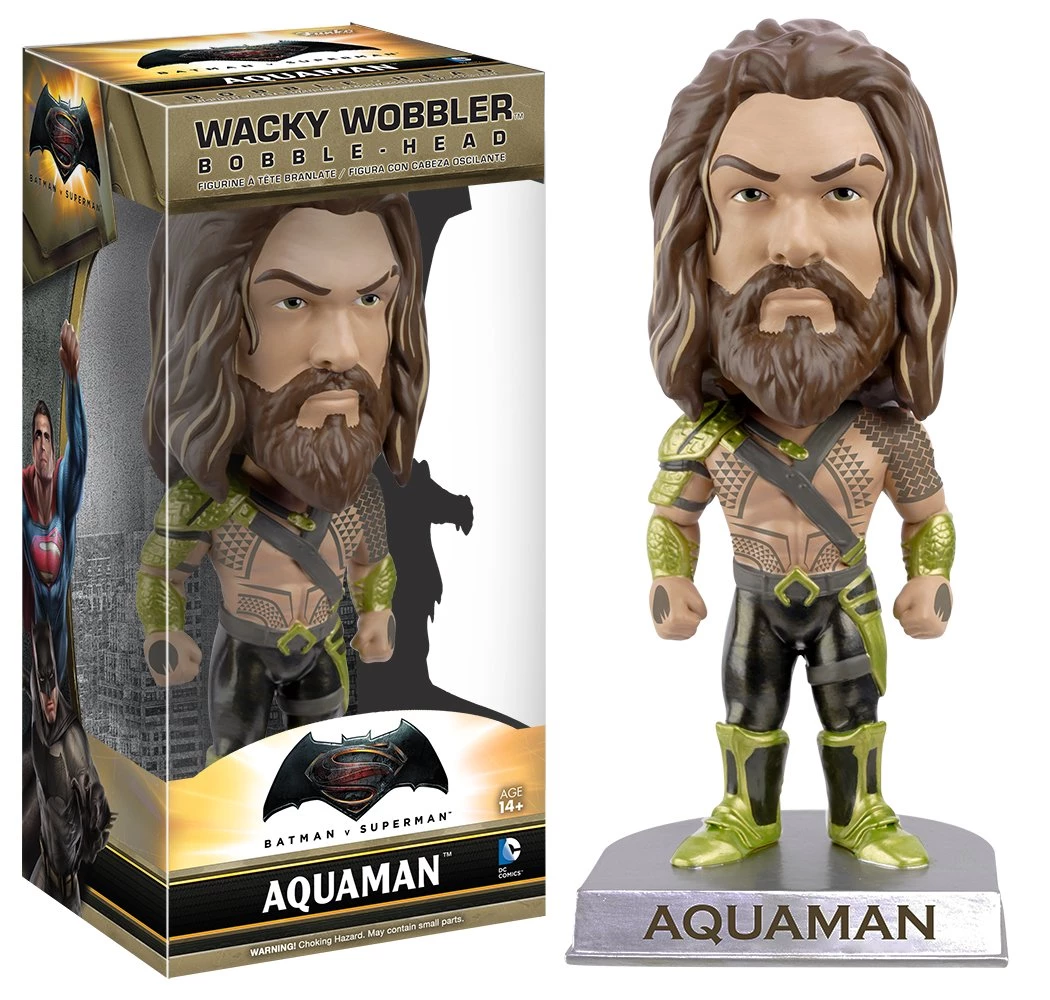 - From the hit movie Batman vs Superman: Dawn of Justice, Aqua man, as a stylized Wacky Wobbler Bobblehead from Funko!