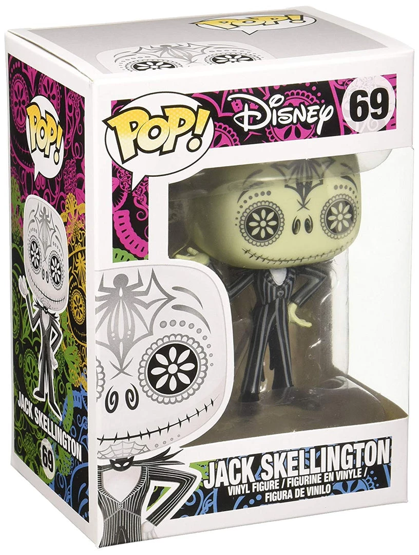 Jack Skellington from the classic Christmas movie The Nightmare Before Christmas has been given a Dia de Los Muertos makeover! The Nightmare Before Christmas Jack Skellington Day of the Dead Pop! Vinyl Figure from Funko stands 3-3/4 inches tall in uniquely stylized form, featuring the kind of artwork and decoration you would see on sugar skulls.
