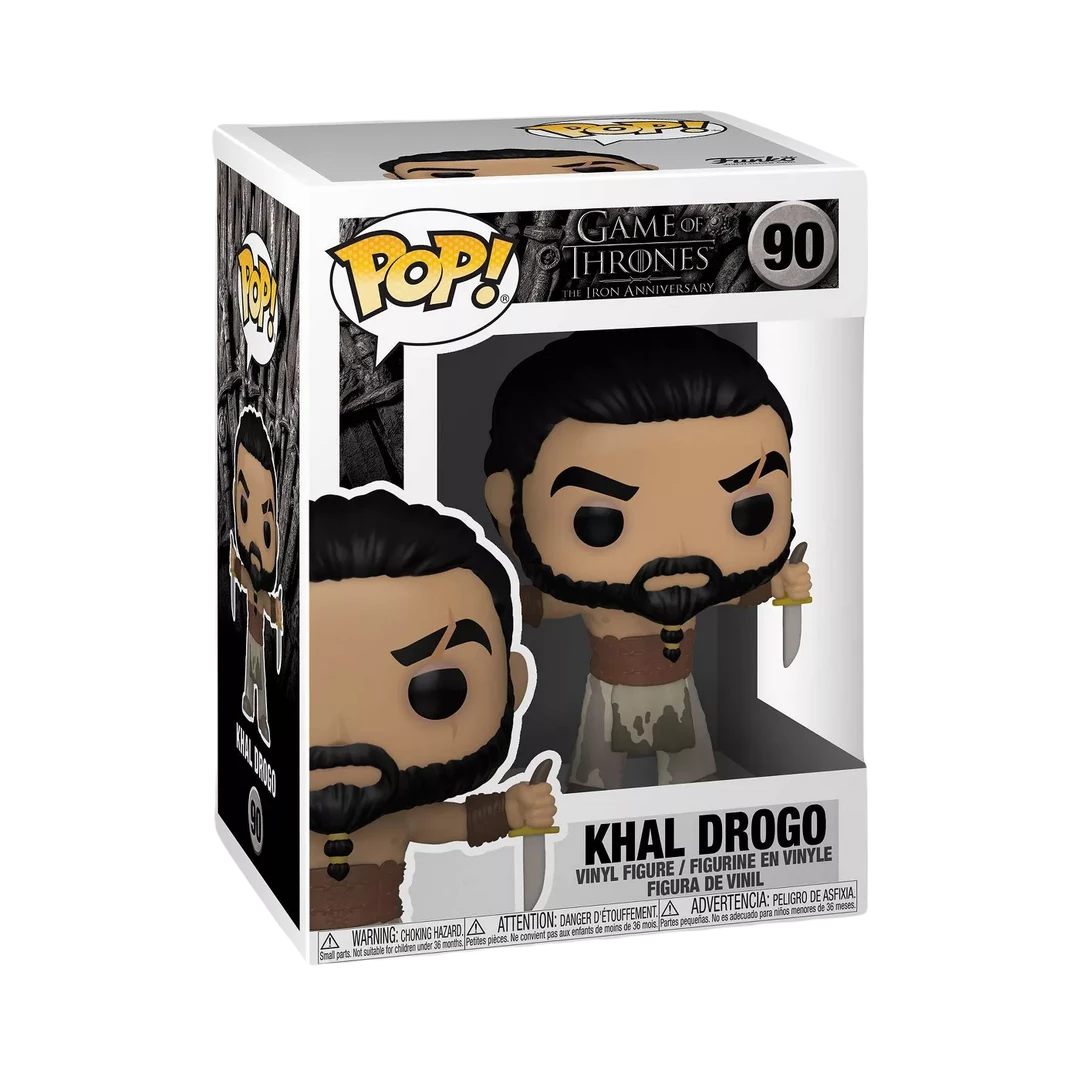 This Game of Thrones Khal Drogo with Daggers Pop! Vinyl Figure measures approximately 3 3/4-inches tall. Comes packaged in a window display box. Ages 3 and up.