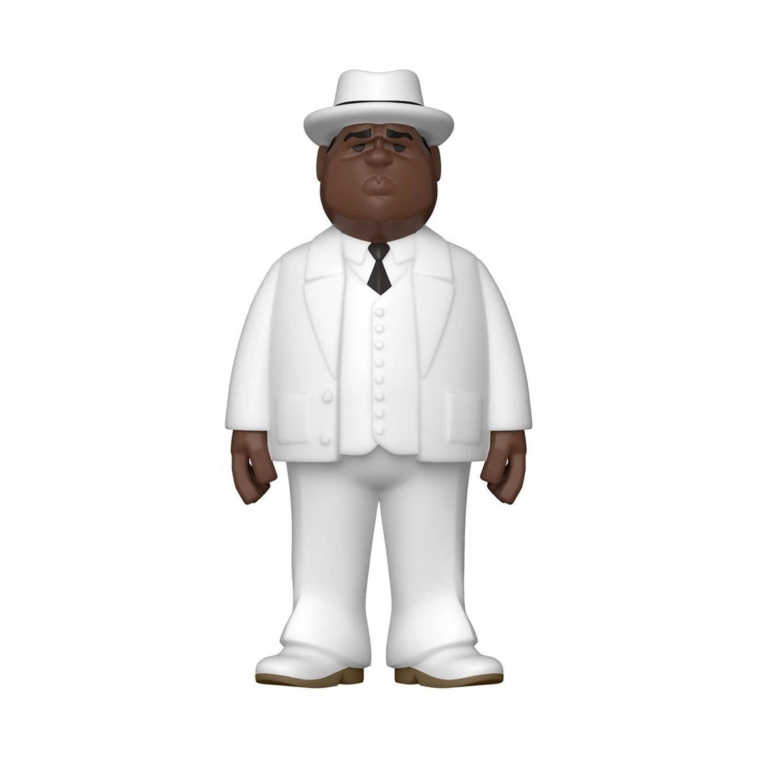 Go for GOLD in your music collection with the new Funko GOLDÂ Notorious B.I.G. premium vinyl figure. Notorious B.I.G. is dressed to the nines in his white suit for this 12-inch tall collectible. Vinyl figure is 12-inches tall.
