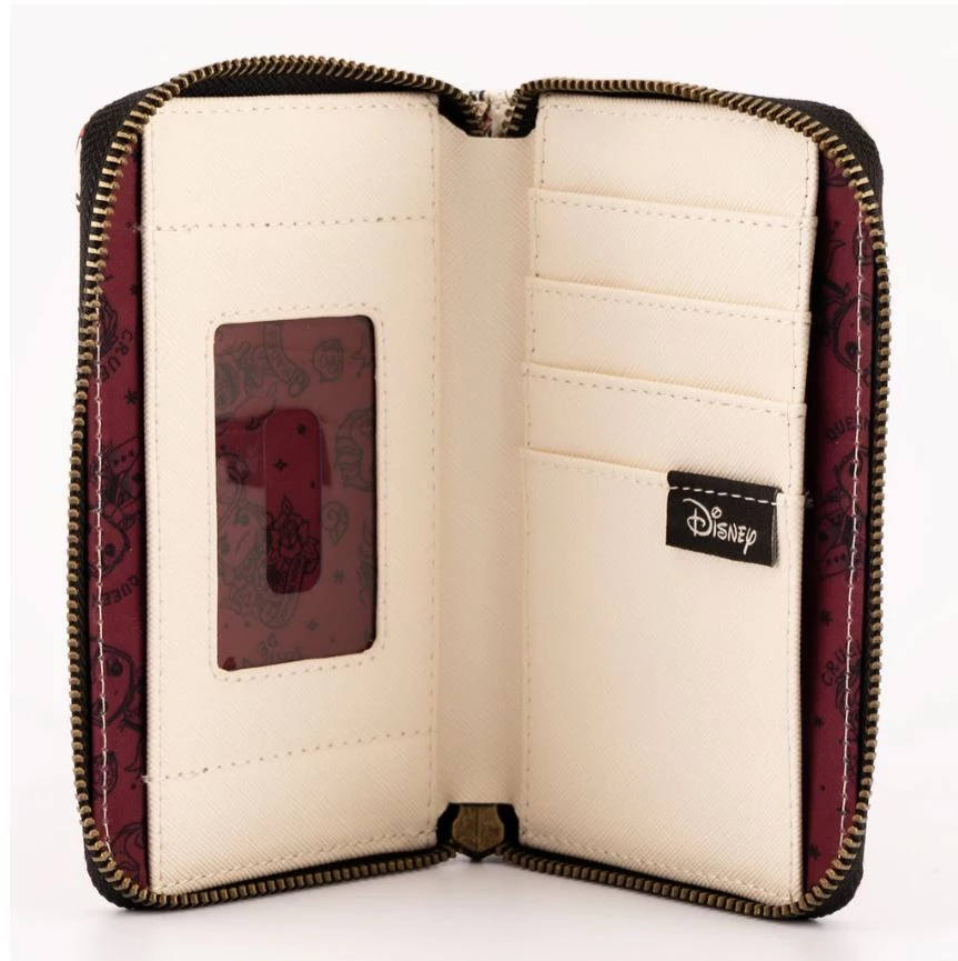 The Pop! by Loungefly Funko Pop! by Loungefly Disney Villains Tattoo Zip Around Wallet is made of vegan leather (polyurethane). Wallet zips closed, has sturdy metal hardware, and features printed details. Take note of the coordinating pattern of the inside lining fabric. Please note: Patterns will vary with all-over-print styles. Not every piece will look identical nor will every piece be an exact match as to what is pictured online.