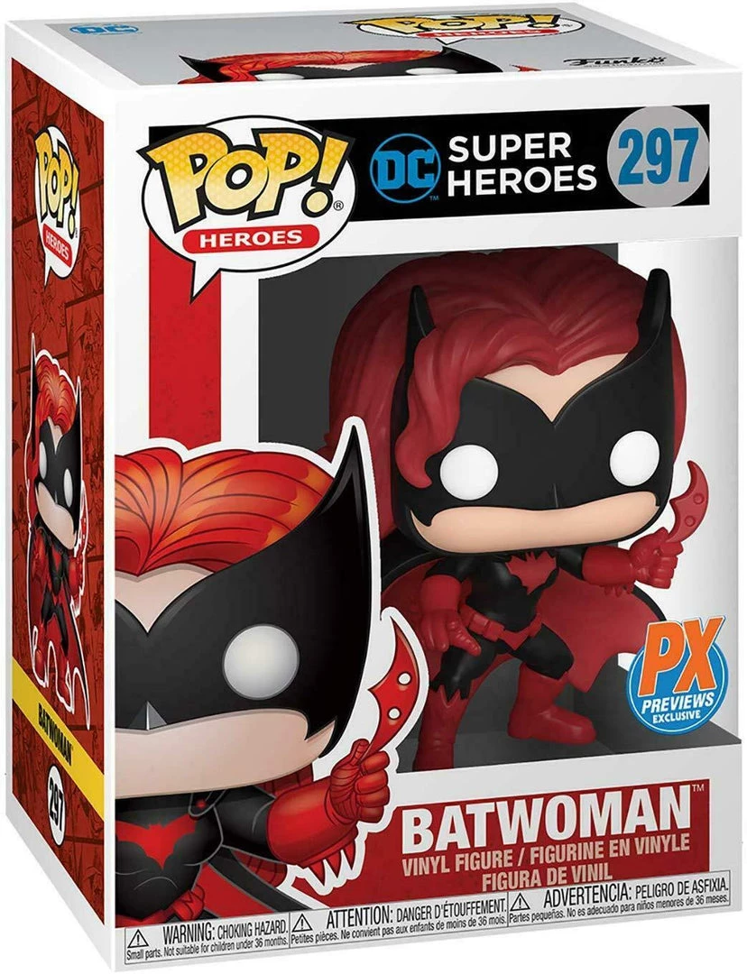 - Featured here in her red and black costume and holding a Batarang, the DC Heroes Batwoman Pop! measures about 3 3/4″ tall and comes in a collector-friendly window box, perfect for display! Be sure to add this PREVIEWS Exclusive Batwoman figure to your Funko Bat-family!