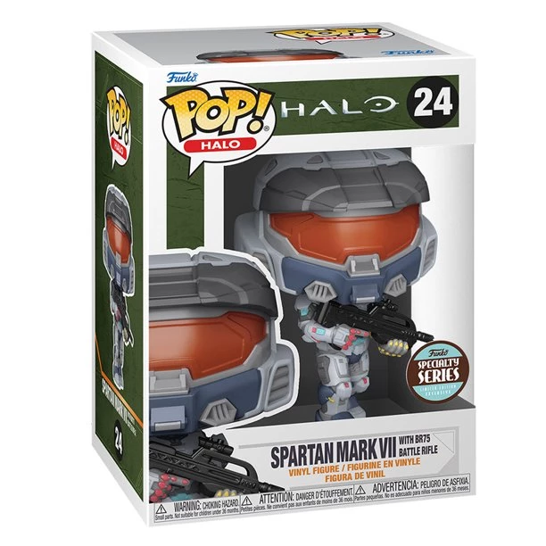 This Halo Infinite Funko Pop! Halo Infinite: Mark VII with BR75 #24 Specialty Series Vinyl Figure measures approximately 3 3/4-inches tall. Comes packaged in a window display box.Â