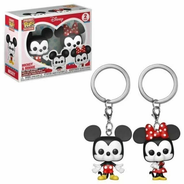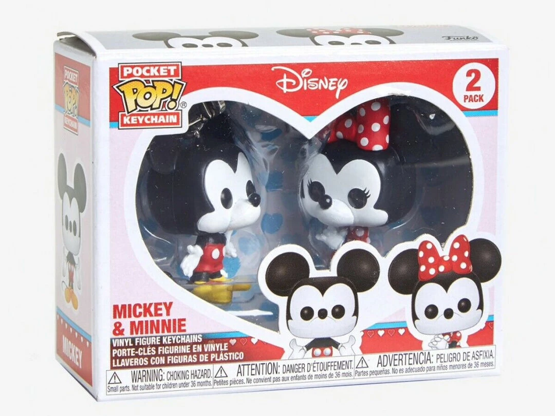 Romance is in the air with these two-pack Pocket Pop! Keychains! This series of Pocket Pop! Keychains features duos such as; Donald and Daisy, Mickey and Minnie, Pongo and Perdita, and Stitch and Angel. Mickey & Minnie each stand approximately 1 ½ inches tall and is packaged in a window display box. ✷ Metal keyring is included
