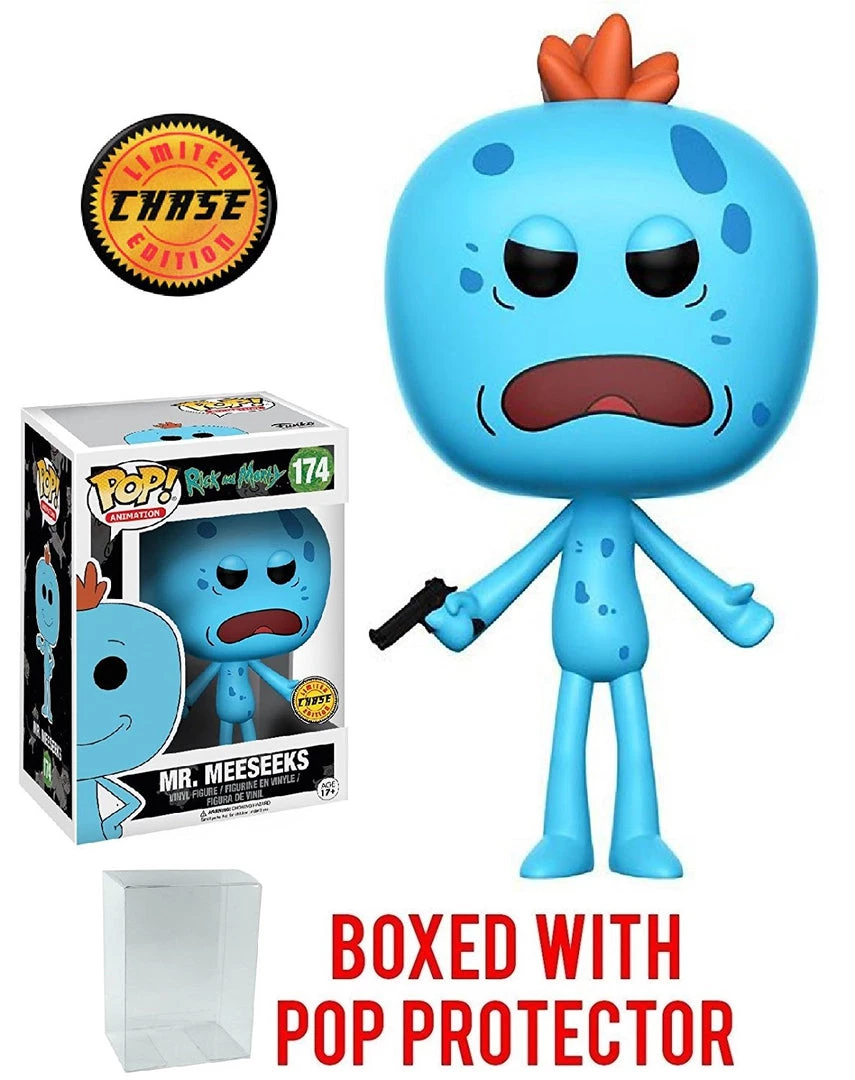 - From Rick and Morty, Mr. Meeseeks CHASE VARIANT, as a stylized POP vinyl from Funko!