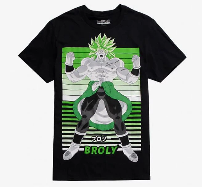 Did someone say Broly? An action-packed Super Saiyan tee from Dragon Ball Super: Broly has a power level of 10,000 and a green and white portrait of the aggressive Dragon Ball antagonist.