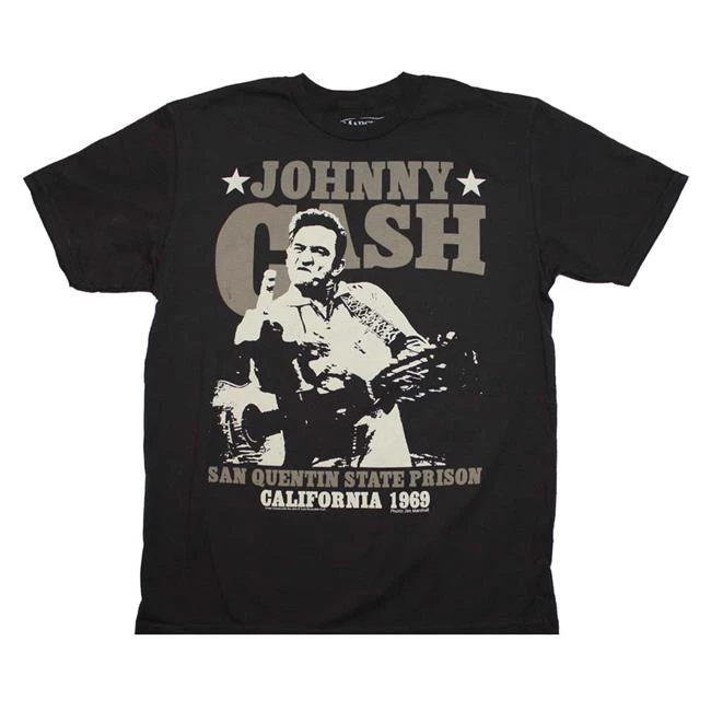 - Officially licensed Johnny Cash T-shirt featuring a cool San Quentin print on the front of the shirt