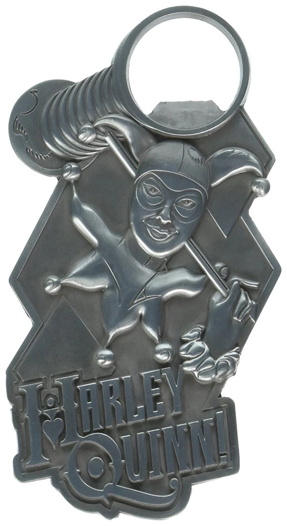 - This bottle opener features the fan-favorite villain Harley Quinn. Her powerful mallet pops the bottle cap!