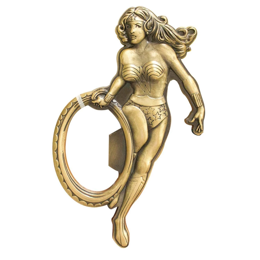 - Channel your inner Wonder Woman when opening your bottle with this bottle opener featuring her insignia