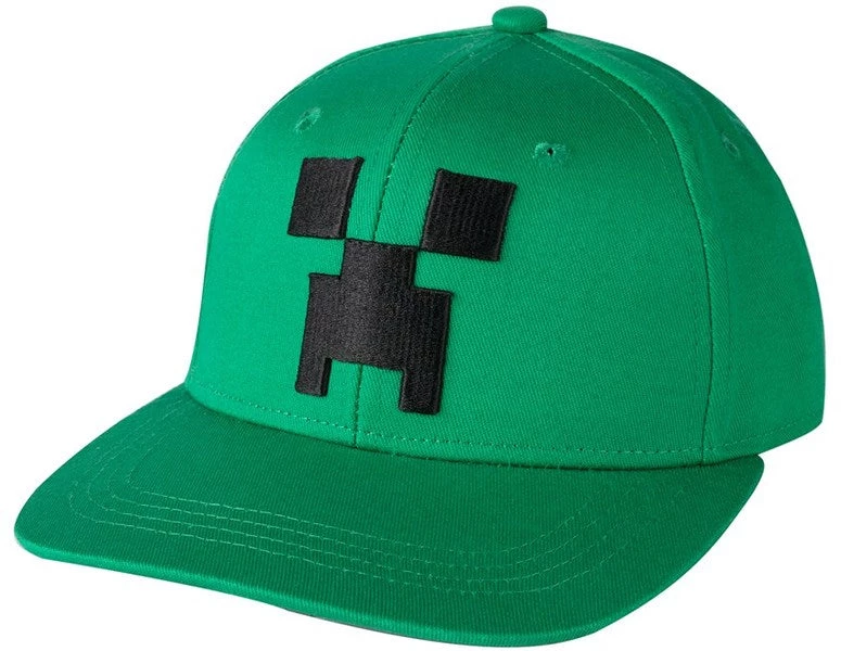 - DESIGNED FOR GAMERS – Green snapback hat featuring Creeper face embroidered on front of cap