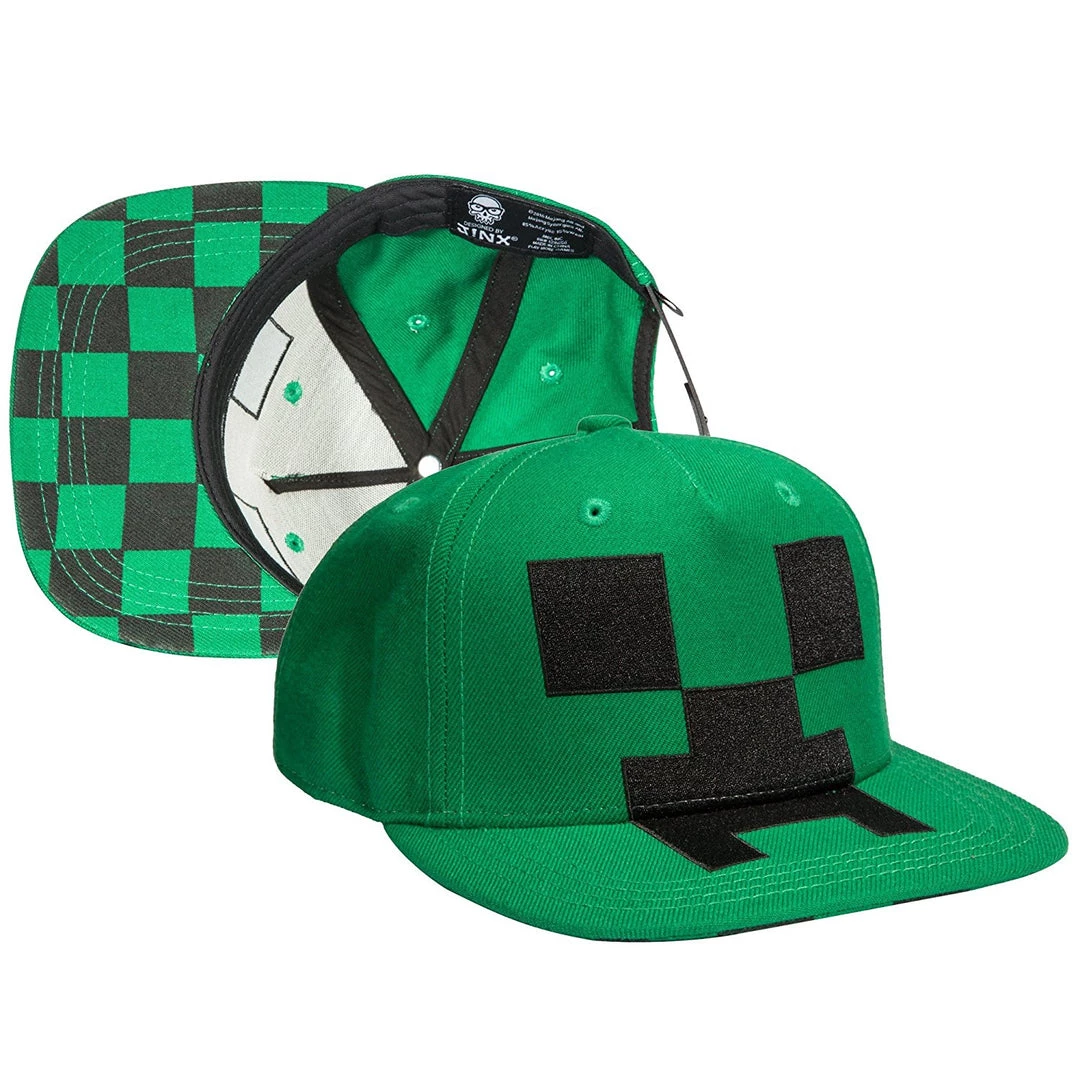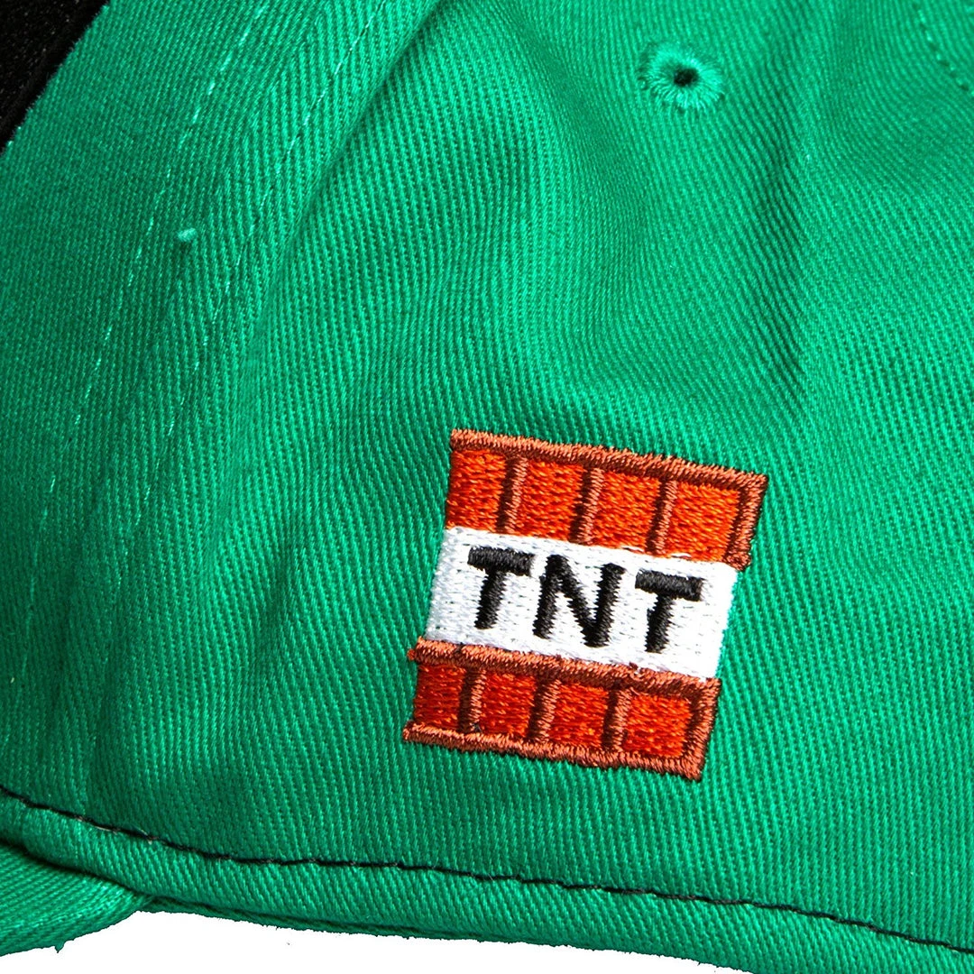 Wear your love of Minecraft with this stylish snapback hat! Green 80% cotton, 20% polyester snapback cap features a Creeper face printed on the front, TNT embroidery on one side, and a dye-sublimation block pattern printed under the brim. Adjustable snapback fit. Officially licensed by Minecraft; designed and created by JINX.