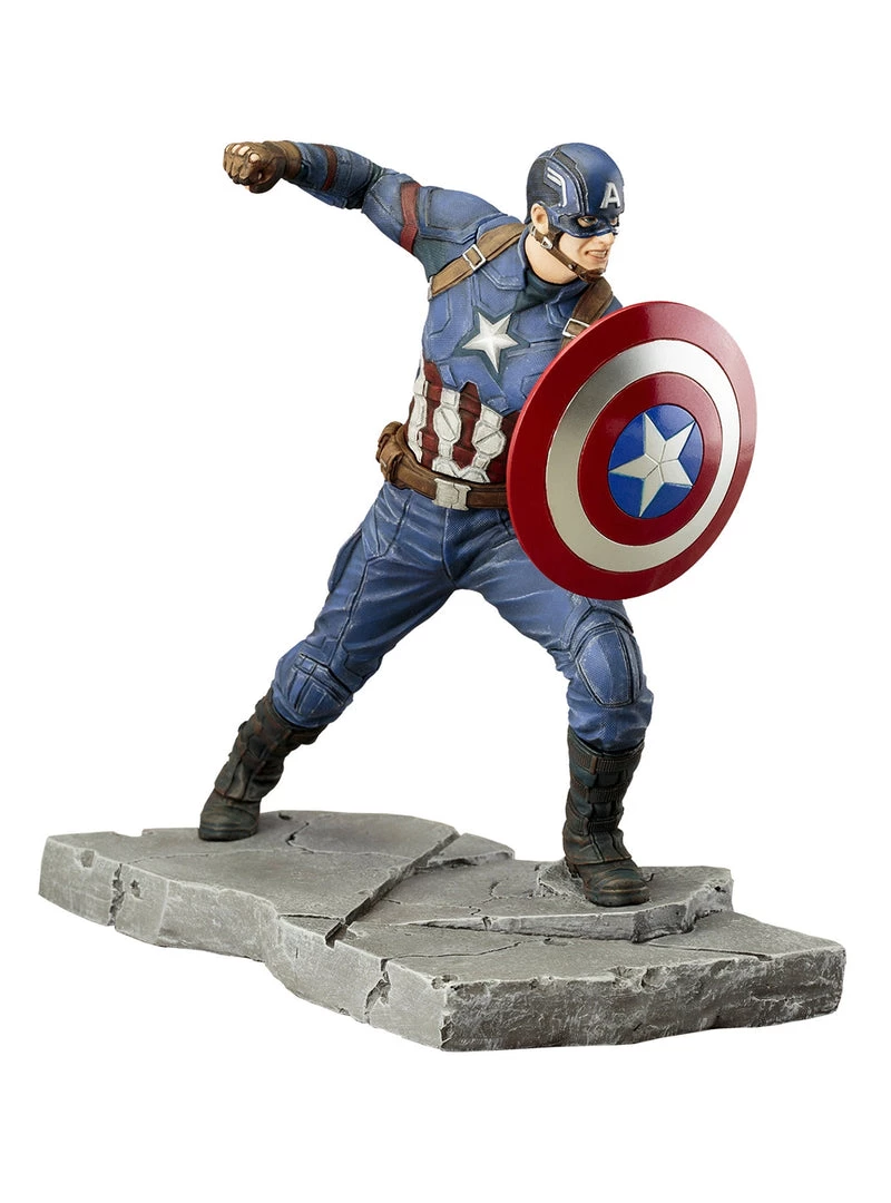 From Kotobukiya. Marvel’s Captain America: Civil War finds Steve Rogers leading the newly formed team of Avengers in their continued efforts to safeguard humanity. But after an incident involving the Avengers results in collateral damage, political pressure mounts to install a system of accountability, fracturing the team. Sculpted and painted in detail from his shield, mask, folds in his clothes, down to the rubbled ground, Captain America raises his fist as he guards himself with his shield, ready to stop his friend. The bases for both Iron Man and Captain America can be combined together to form a battle scene.Â