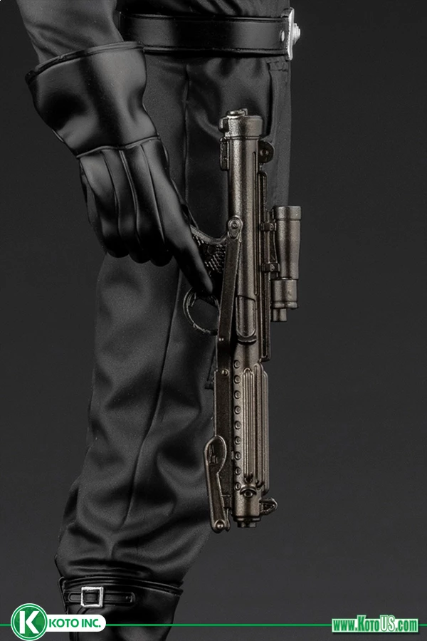 The ARTFX+ TIE Fighter Pilot features the pilot who can be posed at full attention or can be displayed with an E-11 blaster rifle or blaster pistol for optimal display options.