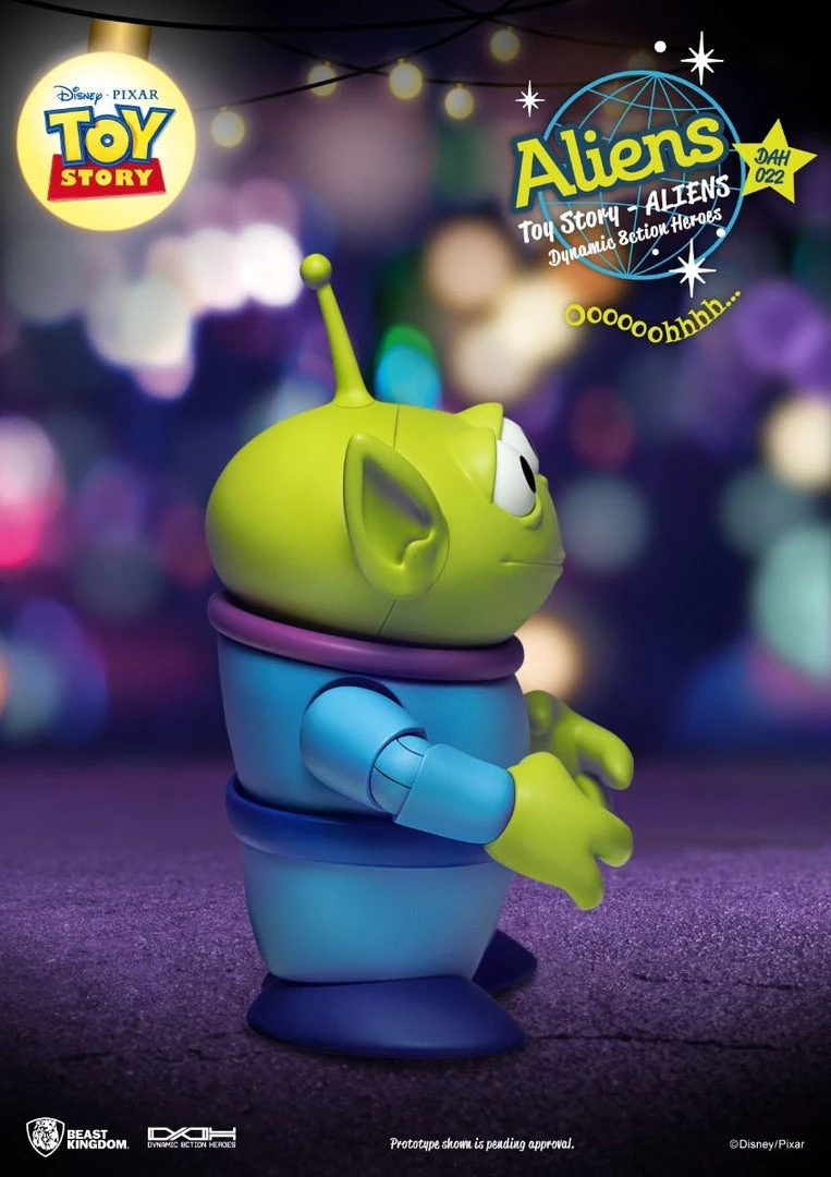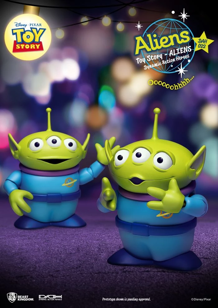 From Beast Kingdom. A PREVIEWS Excusive! The Three-Eyed Aliens from Pizza Planet’s very own claw machine join Woody and Buzz as Dynamic 8action Heroes! With the ability to pose, change faces and even replace hands, these adorable Aliens will look great in any desk or claw-machine! Taking home a DAH figure gives collectors a bevy of options from a number of movable facial expressions to movable eyes, ears and more.