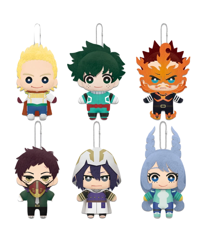 My Hero Academia plush assortment series 3 includes Mirio Togata, Izuku Midoriya, Endeavor, Overhaul, Suneater, and Nejire Chan.