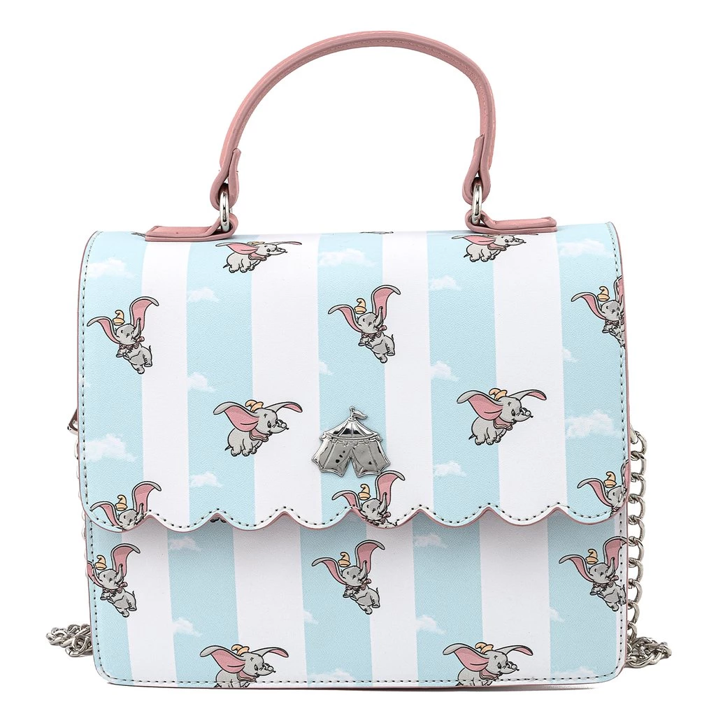 Your ticket to see Dumbo the flying elephant is here with the Dumbo Circus Crossbody Bag. The soft pastel colors and circus tent inspired pattern made for a fun and playful accent to any Disney outfit. This purse is the perfect accessory for Disney fans who are looking to keep one of their favorite animated movies, and their necessities, close.