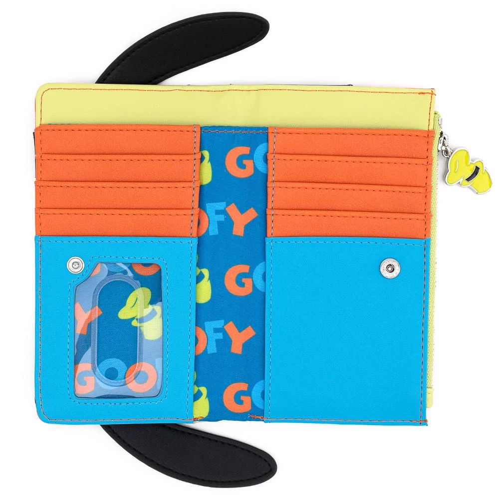 This faux leather wallet includes applique, embroidered, debossed, enamel charm and metal plaque details.