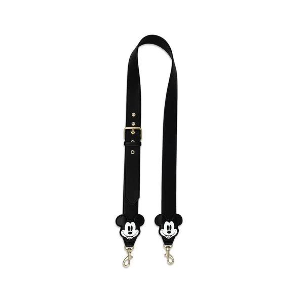 - The Disney Mickey Mouse Head Bag Strap is made of vegan leather (polyurethane). Strap has sturdy metal hardware, swivel clasps, appliques, and printed details.
