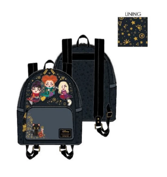 Faux leather mini backpack with printed, applique, foil printed, debossed, and metal zipper charm details.