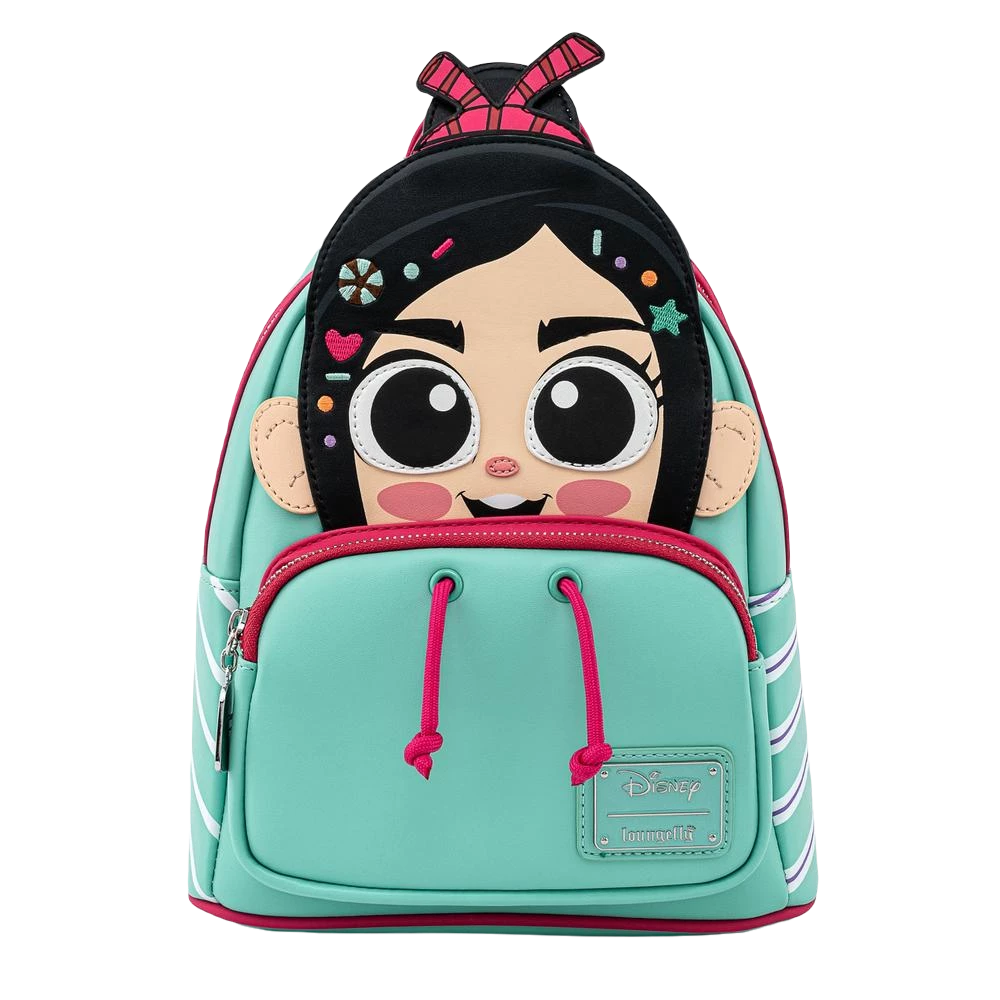 Vanellope von Schweetz is a princess racing to reclaim her throne before she’s erased from her game, Sugar Rush. Embody Vanellope’s quick wit and endless energy with the Loungefly Wreck-It Ralph Vanellope Cosplay Mini Backpack. This backpack makes a great cosplay accessory and an awesome everyday bag to carry all your necessities and sweet treats.