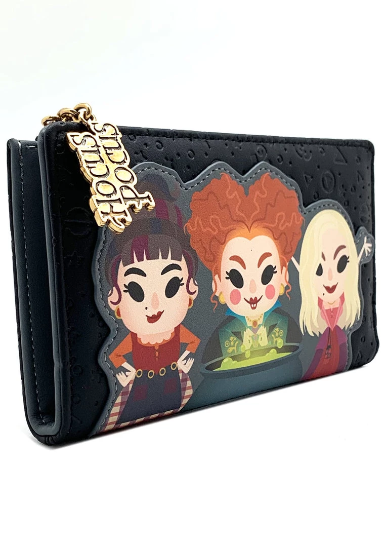 Faux leather wallet with printed, applique, debossed, and metal zipper charm details. The interior lining matches as well.