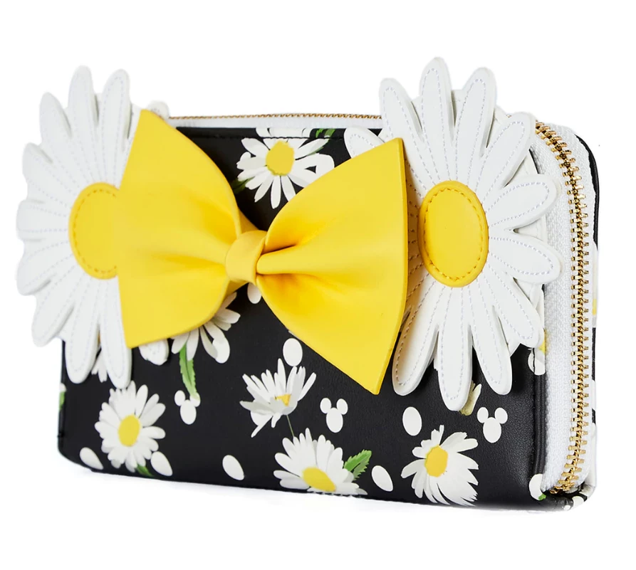 Get ready for spring with the Minnie Mouse Daisy Zip Around Wallet! The white daisies and polka dots stand out against the black background, adding a bright yellow zest to spring or even summer outfits. The wallet has 6 slots for holding cards, a clear window slot for holding your ID, and a zipper pocket. This wallet will help you brighten the new year!