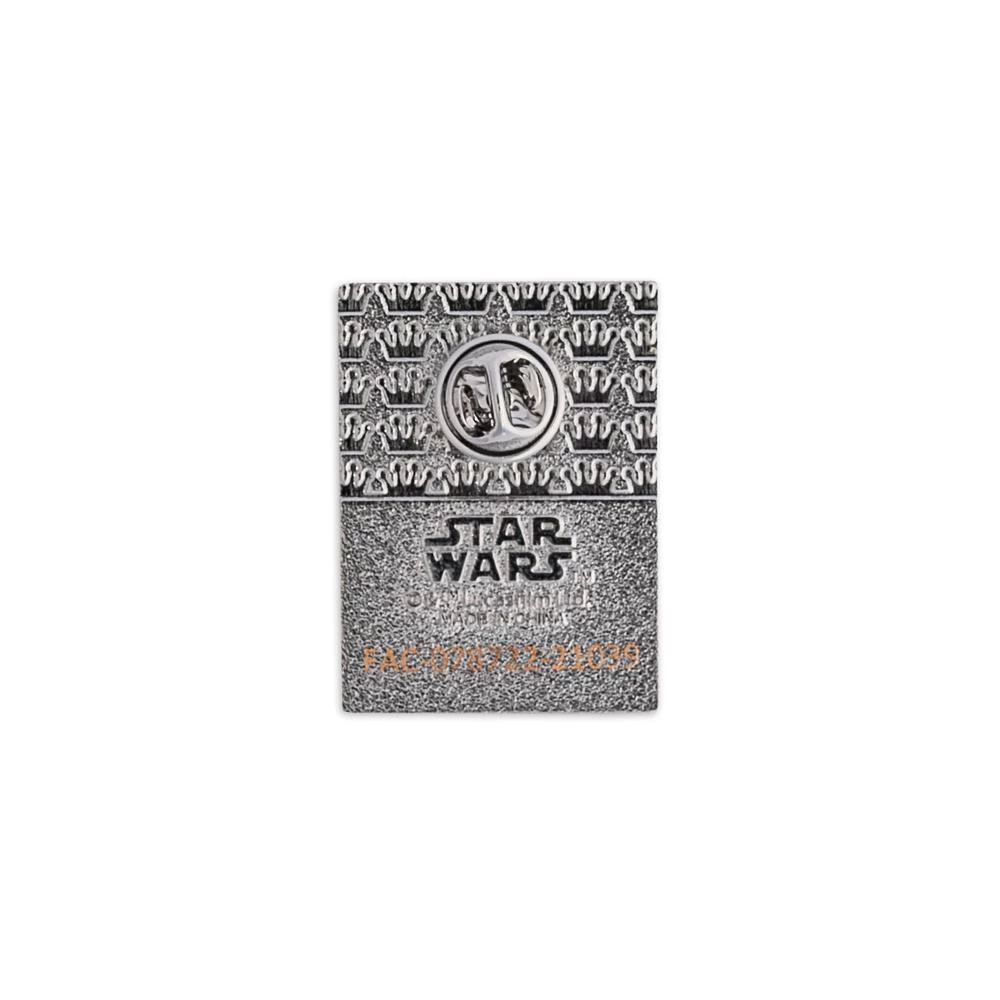 Enamel pins are approximately 1.5-inches tall, feature silver-colored hardware, and the signature crown debossed pattern on the bac