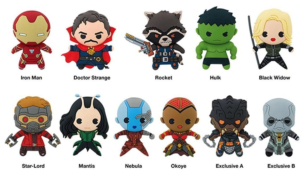 Avengers Series 1 – 3D Foam Collectible Key Rings features characters such as Doctor Strange, Rocket Racoon, Hulk, Black Widow, Star-Lord, Mantis, Nebula, Okoye as well as our two exclusive Characters Cull Obsidian and Ebony Maw.