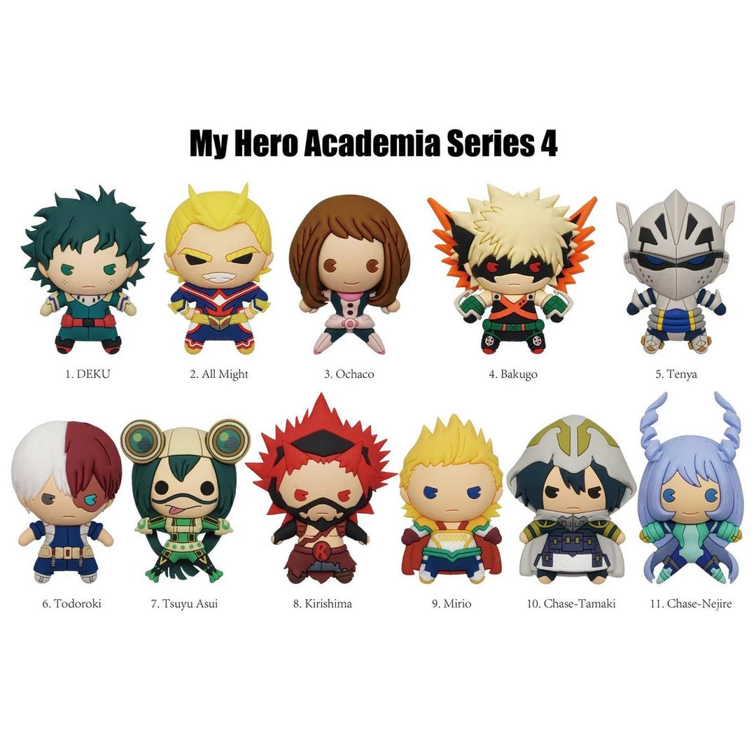 My Hero Academia 3D Foam Key Ring in Blind Bags gives you a chance to collect all eleven characters from the assortment. With each purchase, receive one blind bag containing one 3D My Hero Academia character key rings. No guarantee of which character you will receive, collect them all! Made of PVC, Imported from China. Each 3D My Hero Academia key ring figure stands at around 2-3 inches tall.